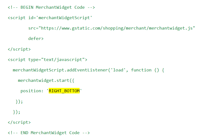 Google provides a small script that needs to be placed inside the head section of your webpage. This script allows the Store Widget to load properly. - Choose Widget Position